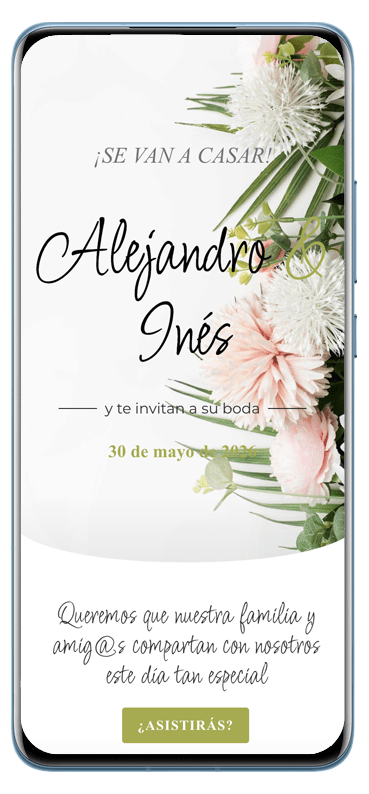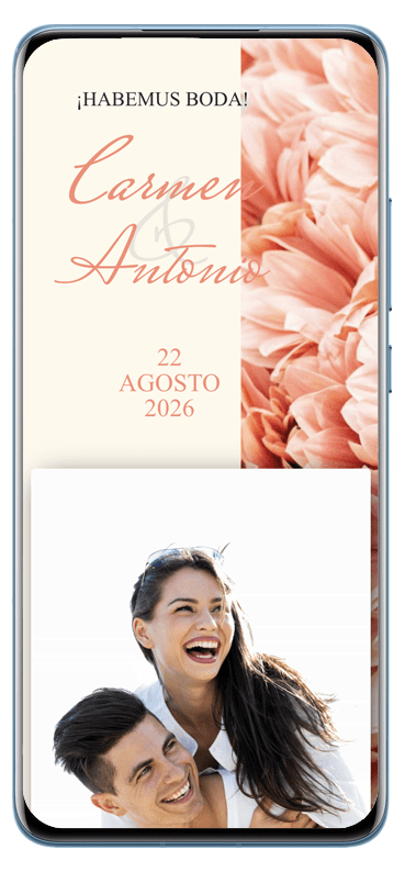 Las invitaciones de boda digitales han revolucionado la forma en que compartimos uno de los días más importantes de nuestra vida. Son modernas, sostenibles, interactivas y completamente personalizables. Con ellas podrás sorprender a tus invitados con una experiencia única, incluir toda la información de tu boda y enviarlas de forma instantánea por WhatsApp, email o redes sociales.