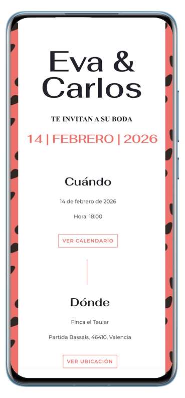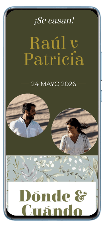 Las invitaciones de boda digitales han revolucionado la forma en que compartimos uno de los días más importantes de nuestra vida. Son modernas, sostenibles, interactivas y completamente personalizables. Con ellas podrás sorprender a tus invitados con una experiencia única, incluir toda la información de tu boda y enviarlas de forma instantánea por WhatsApp, email o redes sociales.