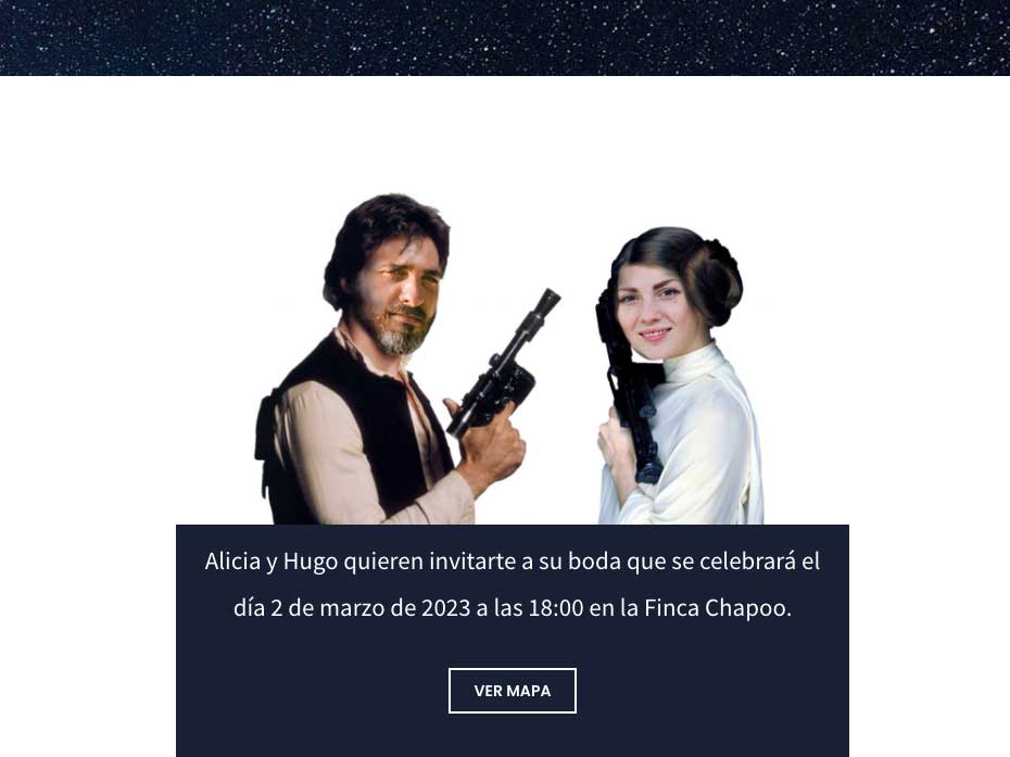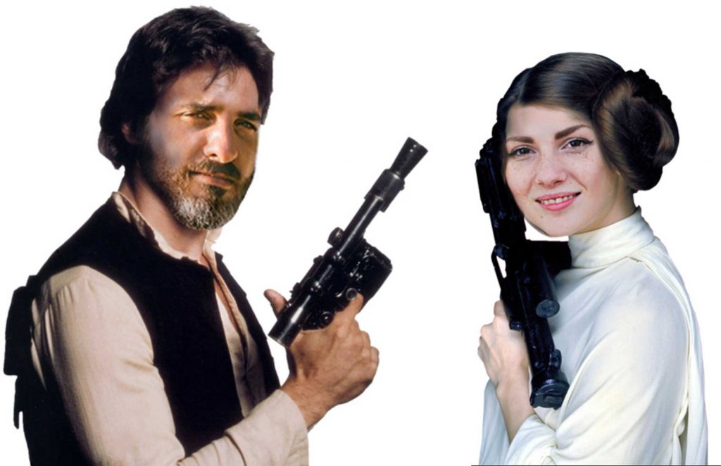 Fotomontaje gracioso de los novios con los personajes de Leia y Han Solo.